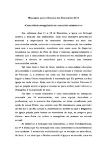 Mensagem para a Semana dos Seminários 2018