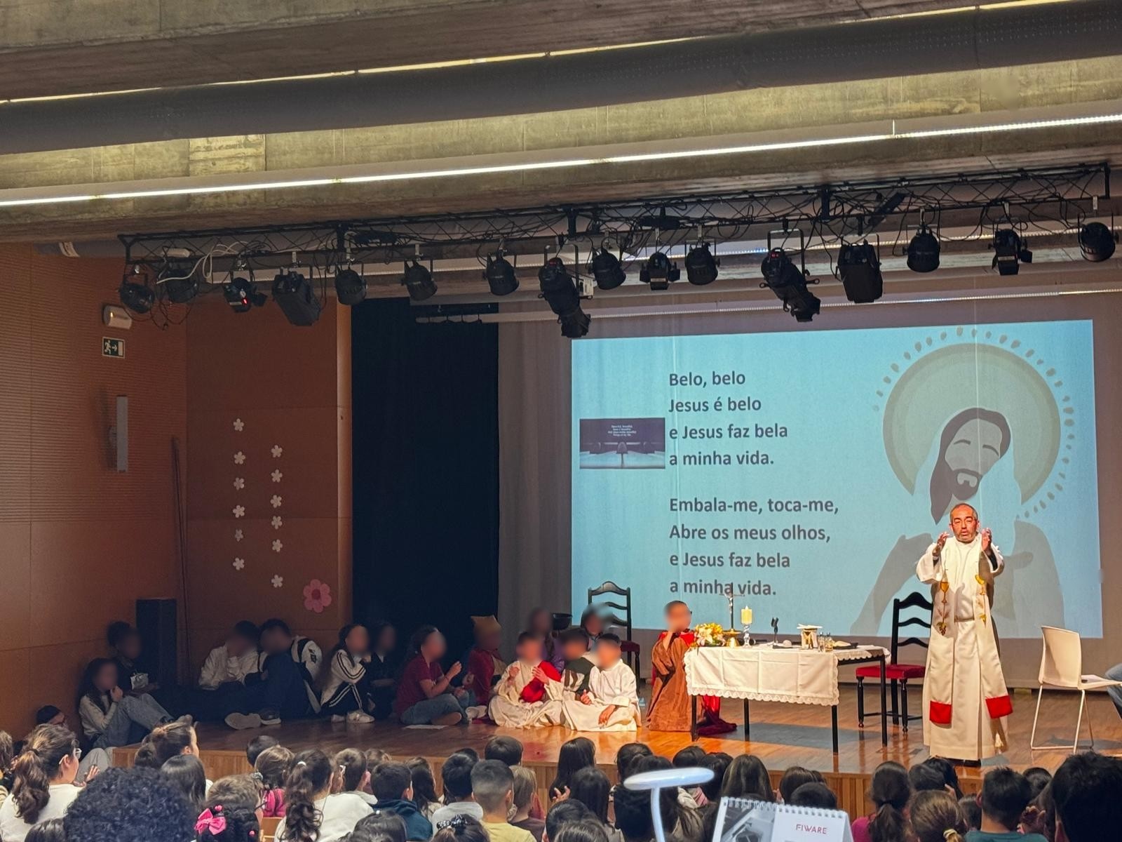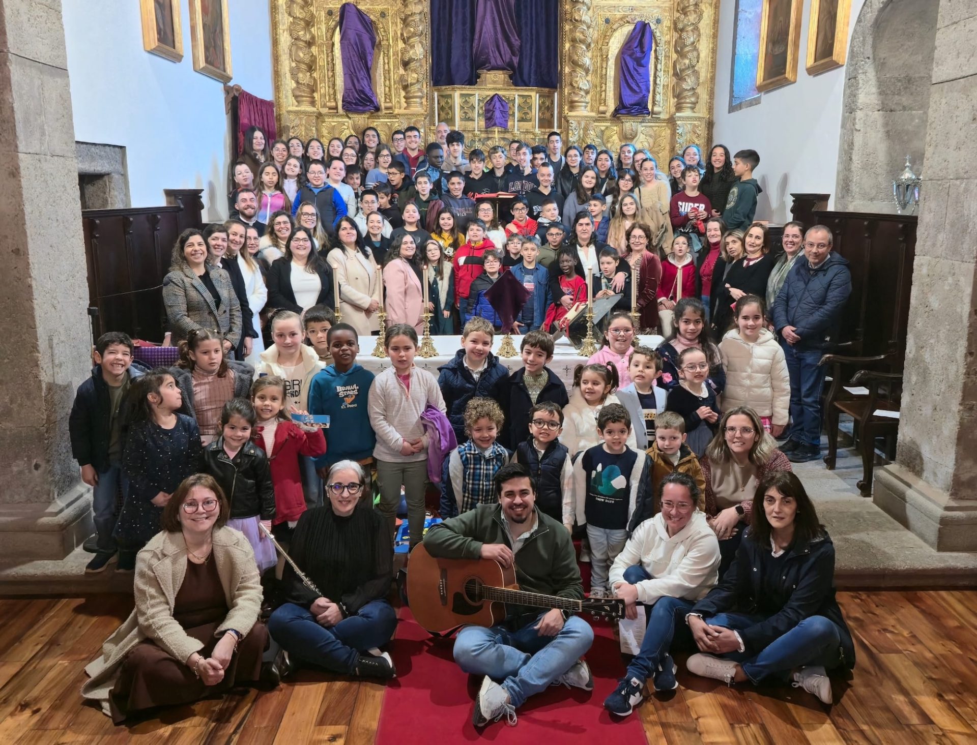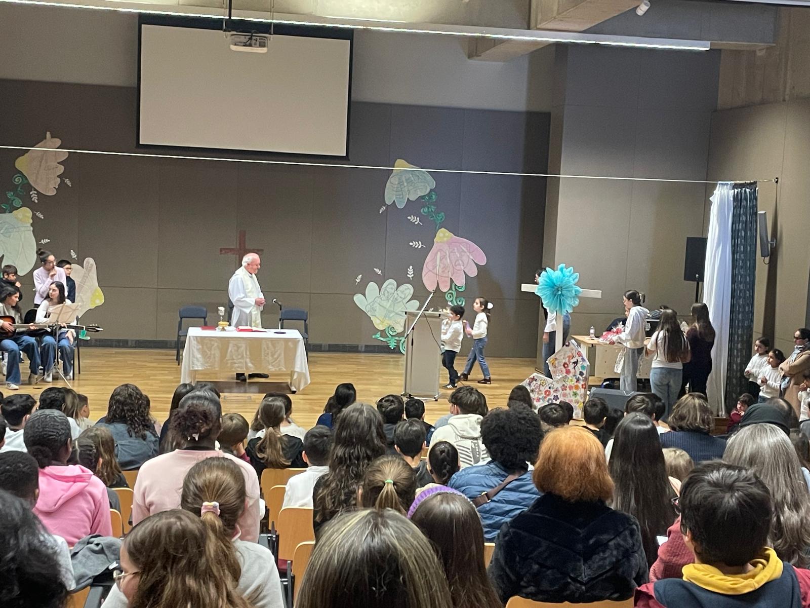 A celebração contou com a participação ativa dos alunos de vários ciclos de ensino. Os alunos do 1.º ciclo animaram os cânticos, previamente ensaiados nas aulas de EMRC, enquanto os alunos do 5.º A, em conjunto com alguns alunos dos 9.º A e B, dramatizaram o Evangelho com encenações da Paixão e Ressurreição de Jesus. Já os alunos do 8.º B assumiram a orientação da oração dos fiéis. A celebração foi enriquecida com apoio audiovisual e com a colaboração musical de um aluno do ensino secundário no violão. Destaca-se ainda o envolvimento do Conselho Executivo, professores e funcionários, que contribuíram para a organização logística do evento.