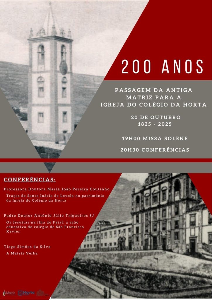 A Paróquia do Santíssimo Salvador da Horta, ilha do Faial, vai assinalar, no próximo dia 20 de outubro de 2025, os 200 anos da transferência da antiga Igreja Matriz para a Igreja do Colégio dos Jesuítas, atual Igreja Matriz da cidade. As comemorações incluem uma Missa Solene às 19h00 e um ciclo de conferências a partir das 20h30, reunindo especialistas em história, arte e património religioso.
