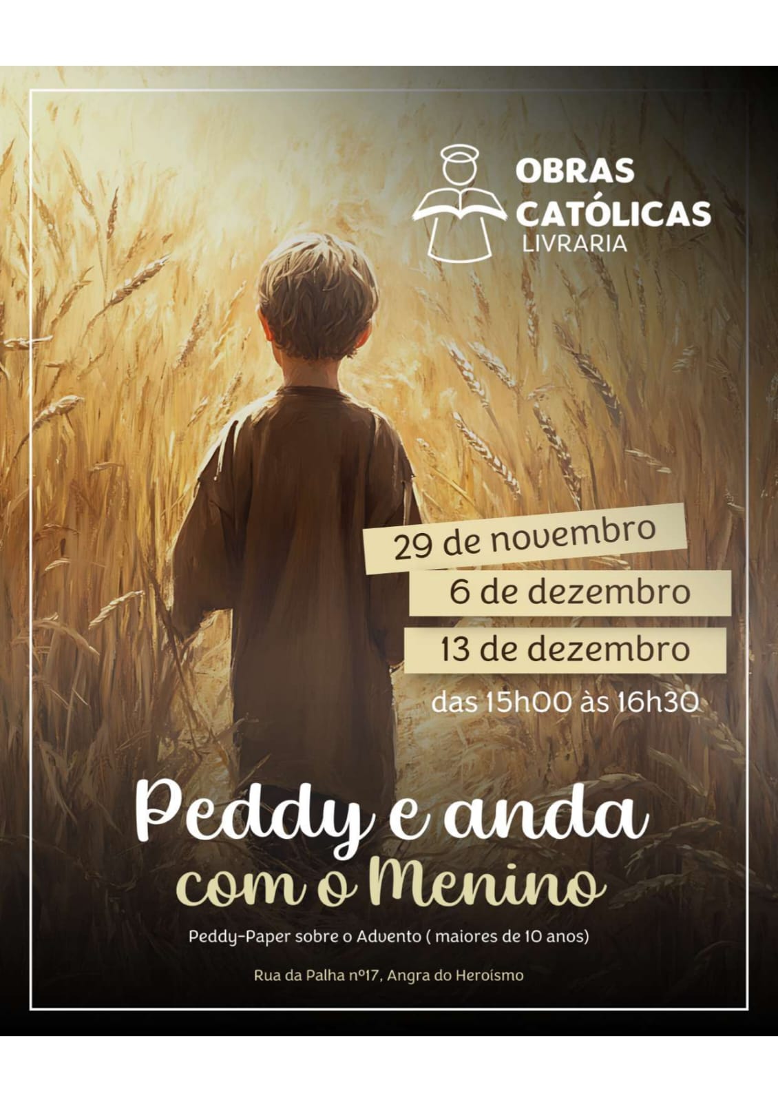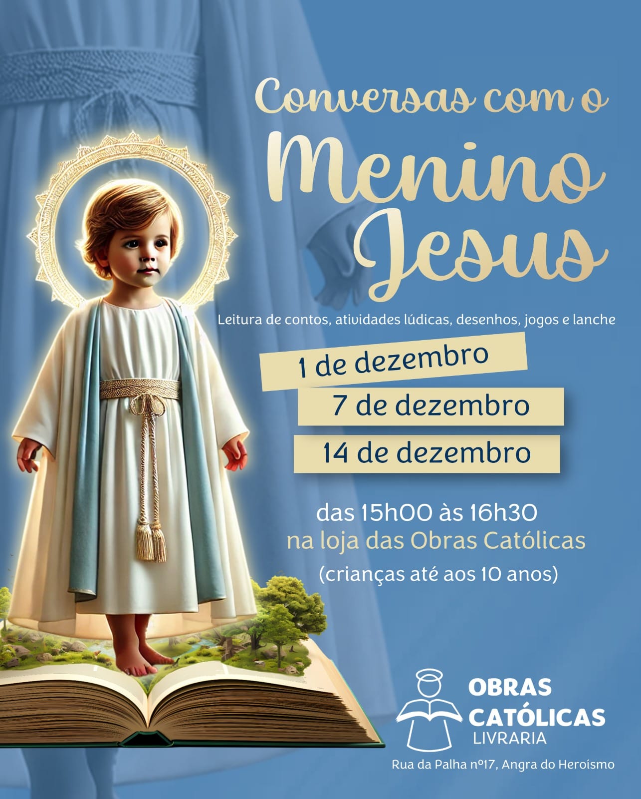 A Livraria das Obras Católicas voltou a preparar um programa especial para o Advento dirigido a toda a Catequese da Ilha Terceira, com iniciativas destinadas tanto às crianças como aos adolescentes e jovens. As atividades decorrem entre 29 de novembro e 14 de dezembro, com propostas aos sábados e domingos, das 15h às 16h30, desenvolvidas em parceria com o Serviço Diocesano de apoio à Evangelização Catequese e Missão.